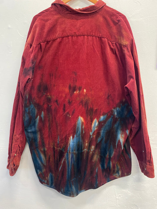 Upcycled - Hella Positive Bleach // Tie Dye Corduroy Button Down - 2XL