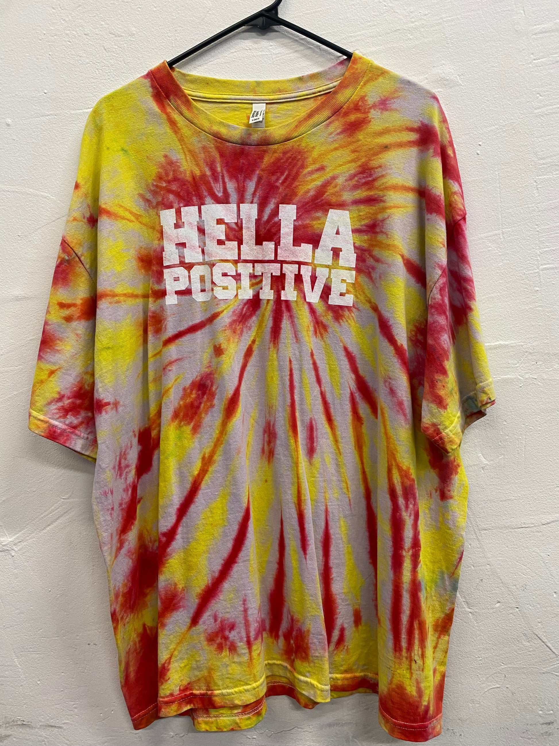This Hella Positive Tie Dye T Shirt is the ultimate combination of vibrancy and comfort. Featuring a unique tie dye pattern, this t shirt is sure to catch eyes while providing hella positive energy. Get ready to make a statement!