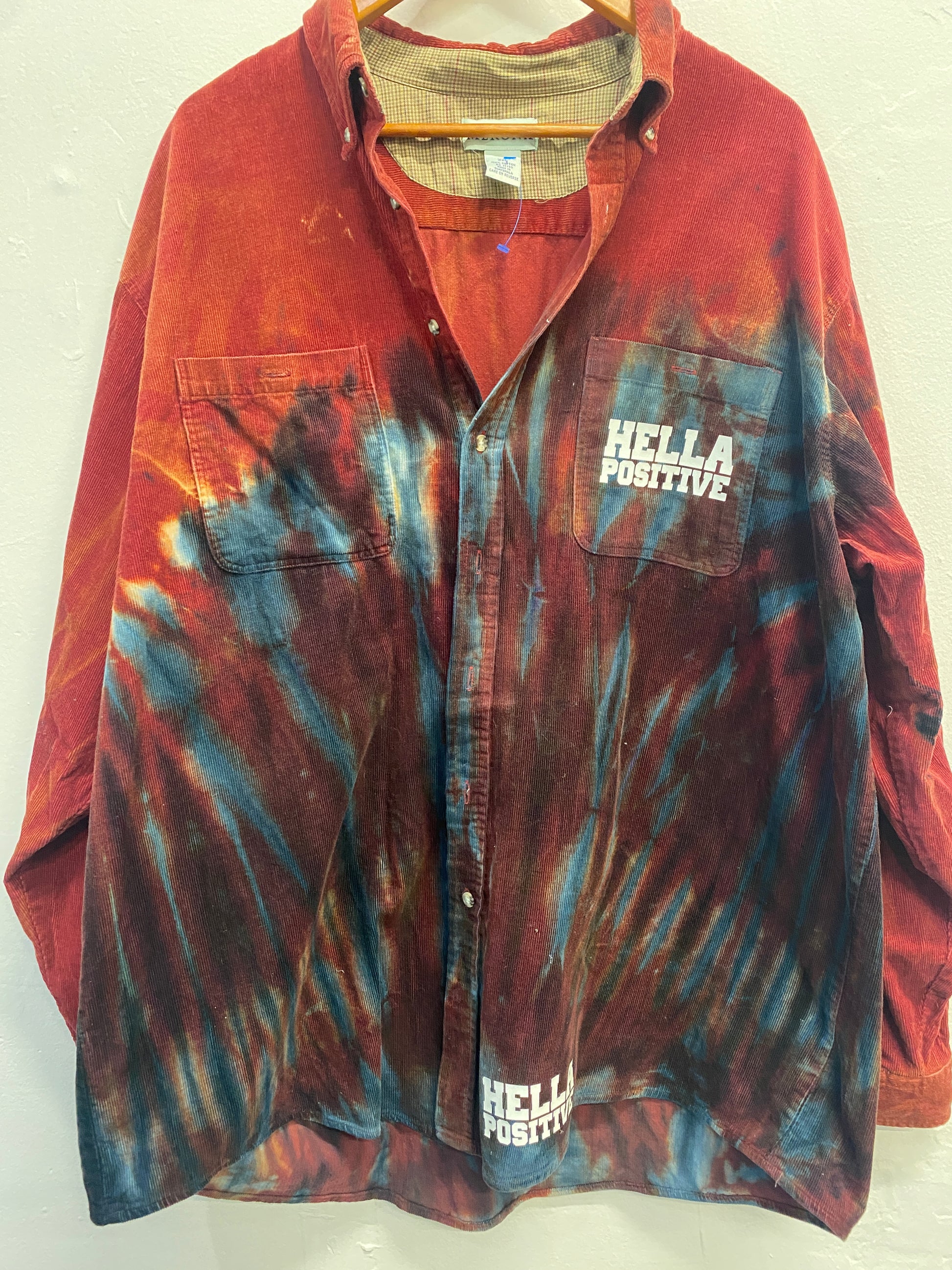 Upcycled - Hella Positive Bleach // Tie Dye Corduroy Button Down - 2XL